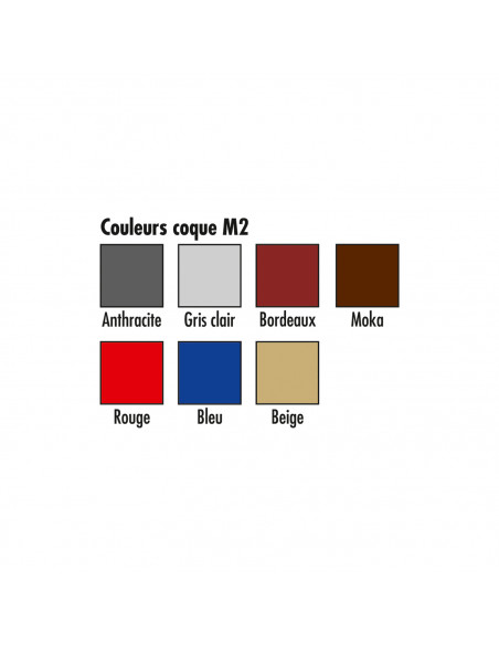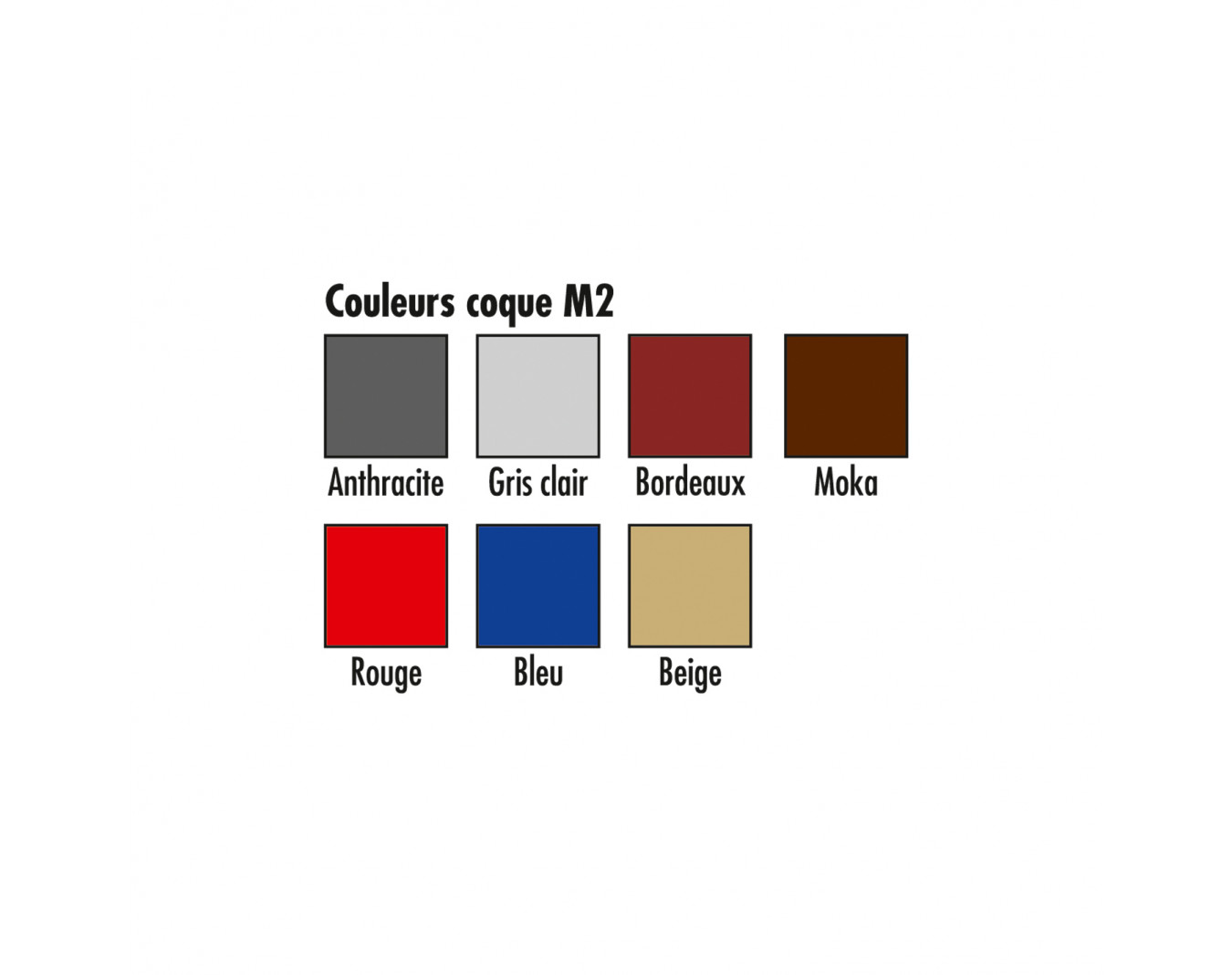Coque en polypropylène aspect grainé, classée au feu M2, fixation sur piètement par clipsage.
