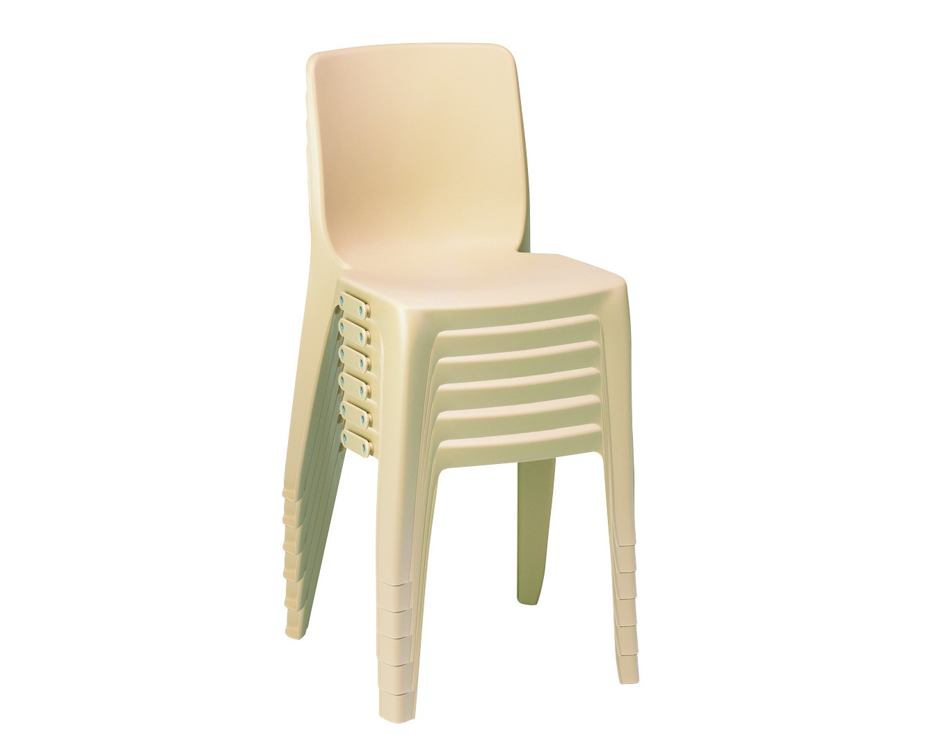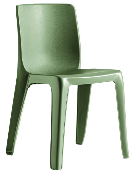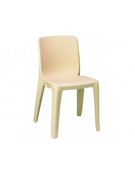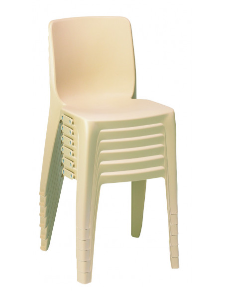 Chaise monobloc en résine de synthèse, classée au feu M4, résistante aux UV et aux intempéries.