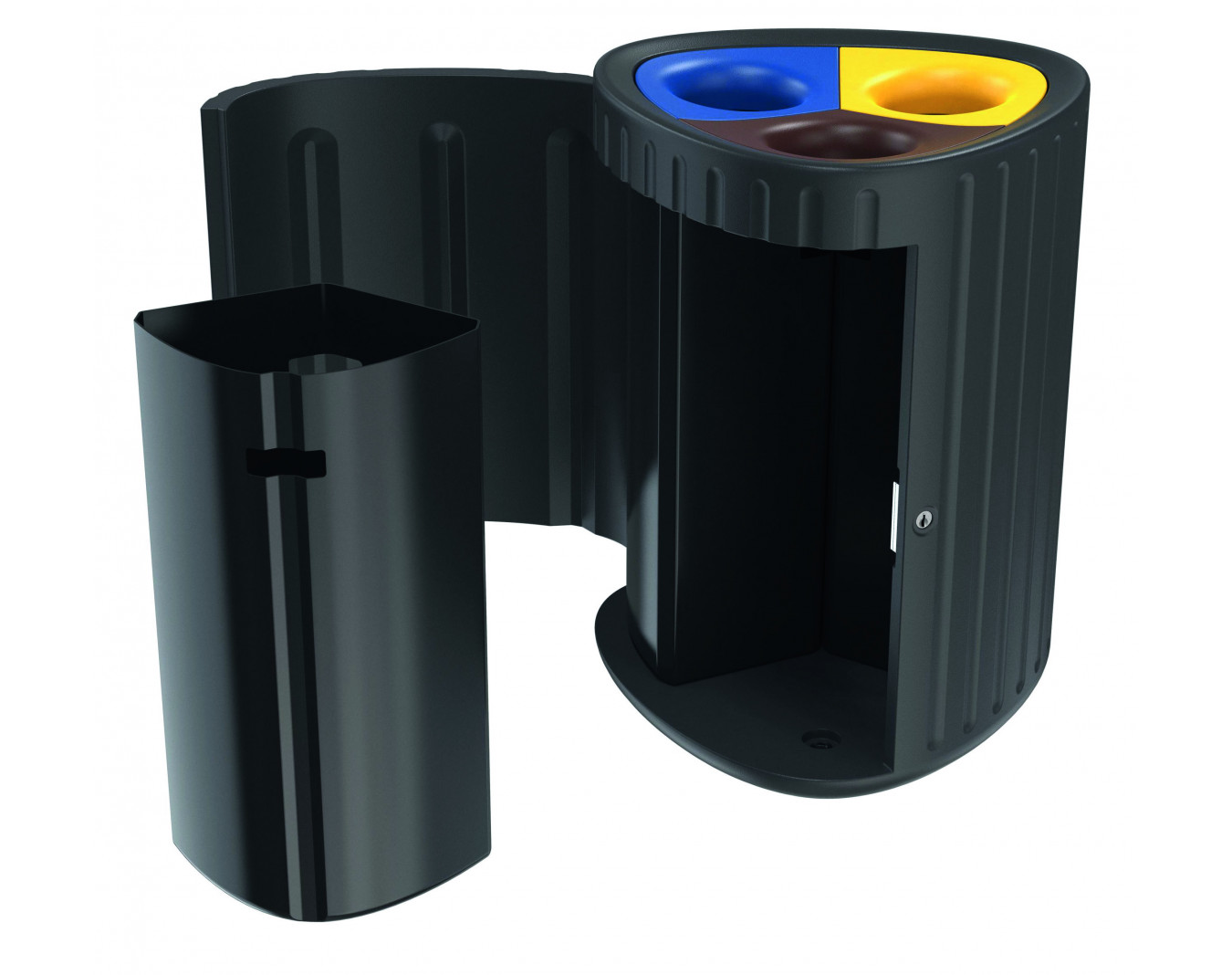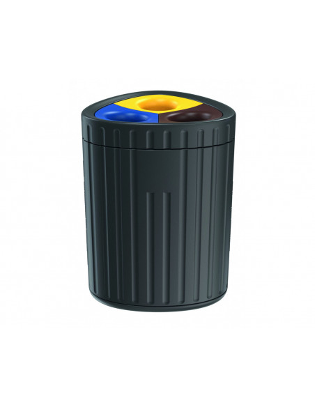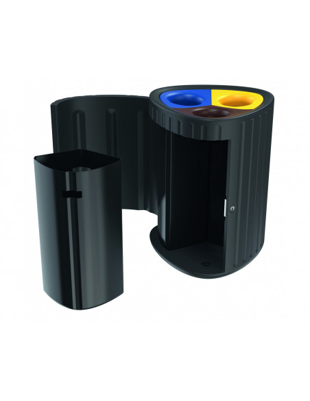 Poubelle pour tri sélectif en polyéthylène traité anti-UV, 100 % recyclable, coloris noir.Sans entretien, résistante aux impacts.