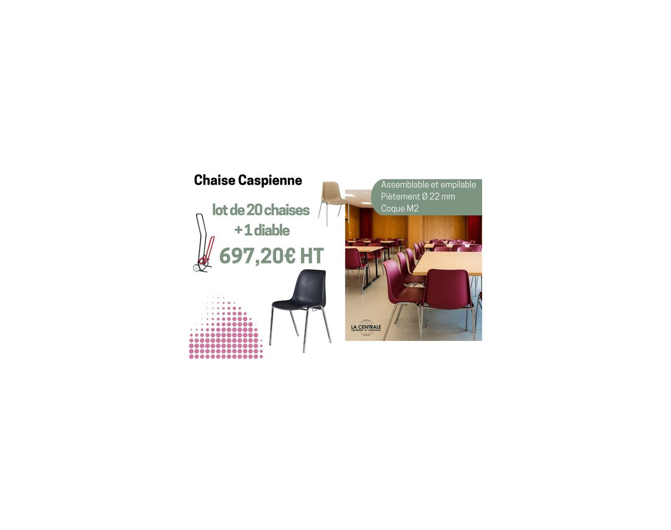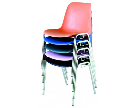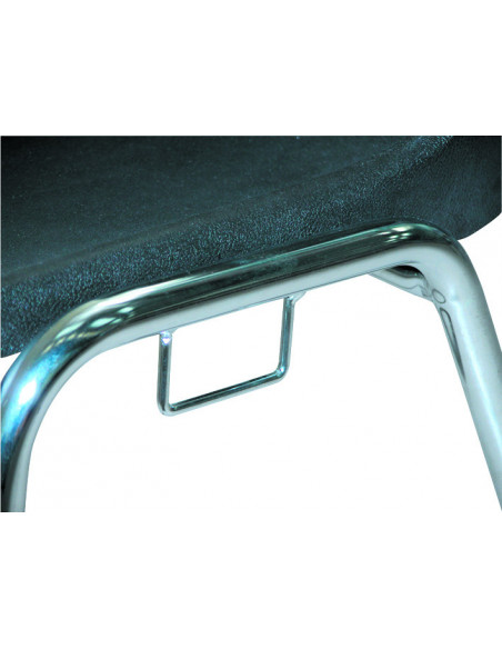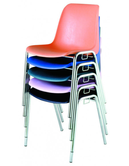 Chaise d'intérieur pour les établissements recevant du public. Piètement en acier rond Ø 22 mm, finition chromée, équipé de 4 tampons antibruit. Coque en polypropylène ignifugé teinté dans la...