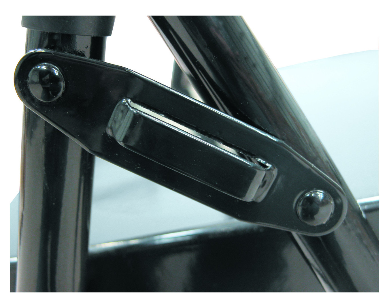 Ossature en tube acier Ø 22 mm avec barres de renfort, finition peinture époxy noire.