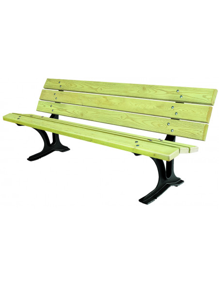 Banc et banquette extérieurs avec lames en Pin traité autoclave, certifié FSC. Piètement en fonte traitée antirouille, finition peinture laquée noire RAL 9005. Épaisseur lames : 35 mm....
