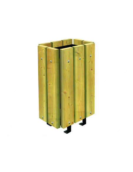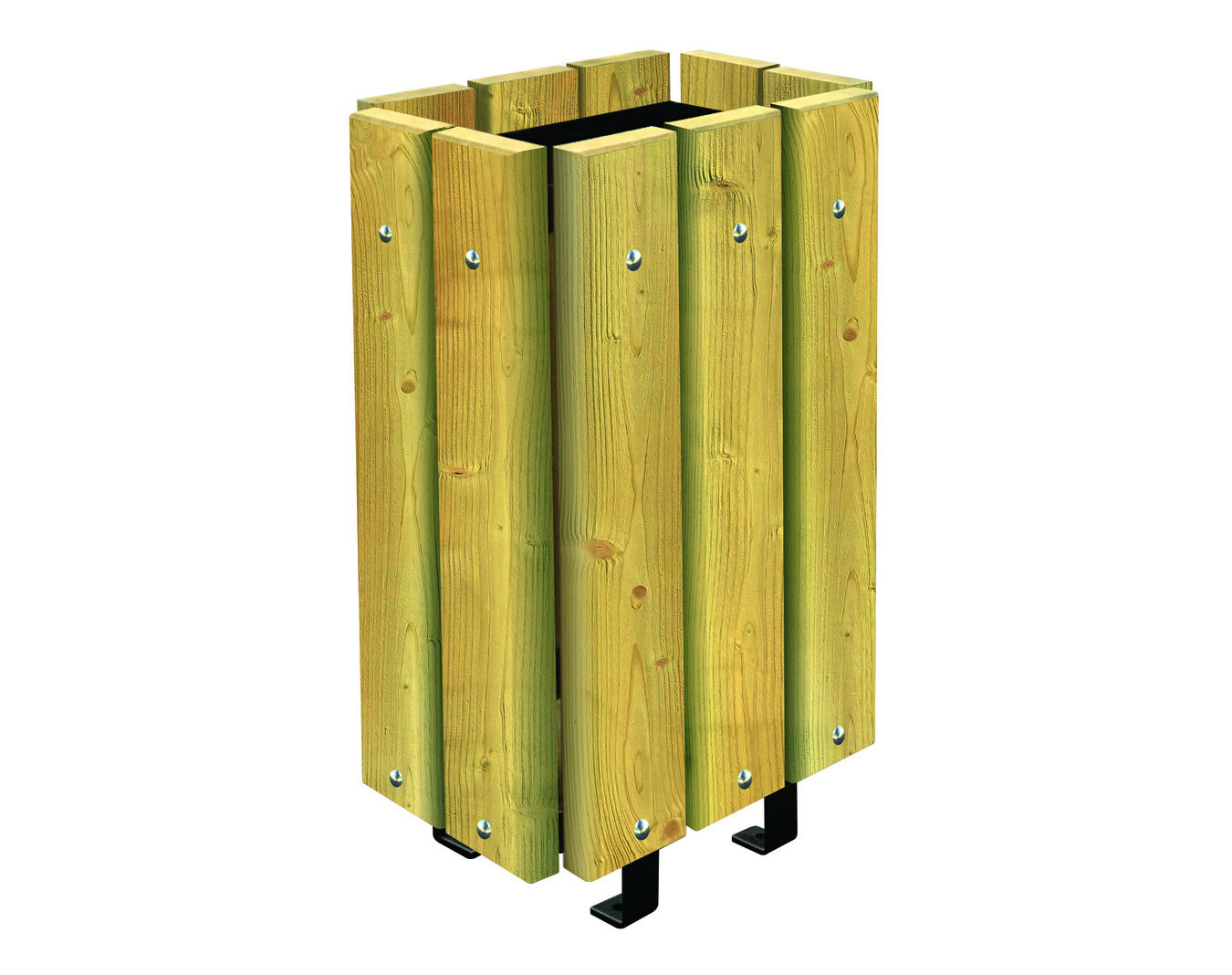 Corbeille urbaine avec lames en Pin du Nord traité autoclave, certifié FSC, épaisseur 35 mm.