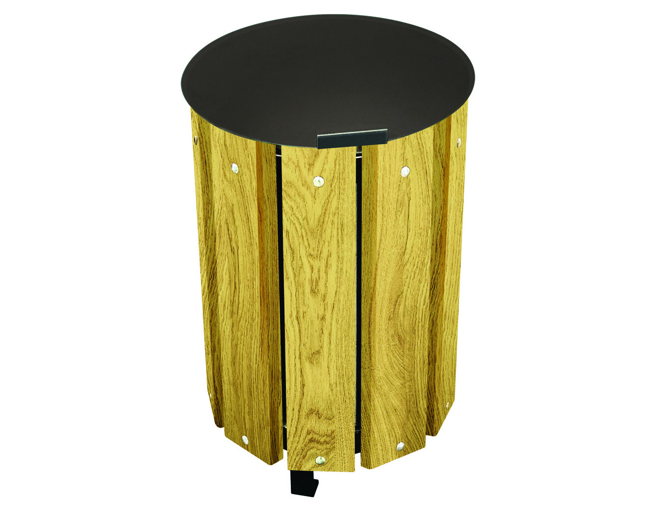 Lames en Pin du Nord traité autoclave, certifié FSC, épaisseur 35 mm. Poubelle avec couvercle en métal peint coloris noir RAL 9005. Support sac en acier. Fond...