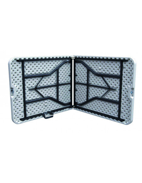 Plateau pliant par le milieu avec système de verrouillage en position dépliée.