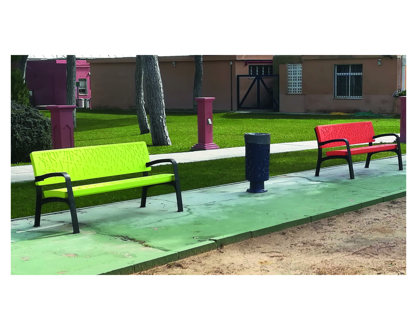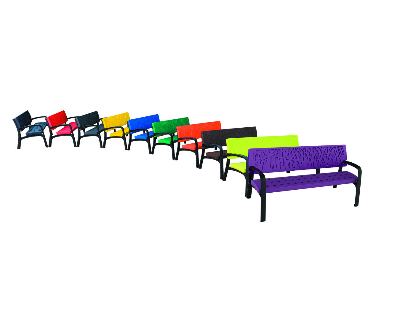 Banc public moderne en polyéthylène haute densité, 100 % recyclable, traité anti-UV.