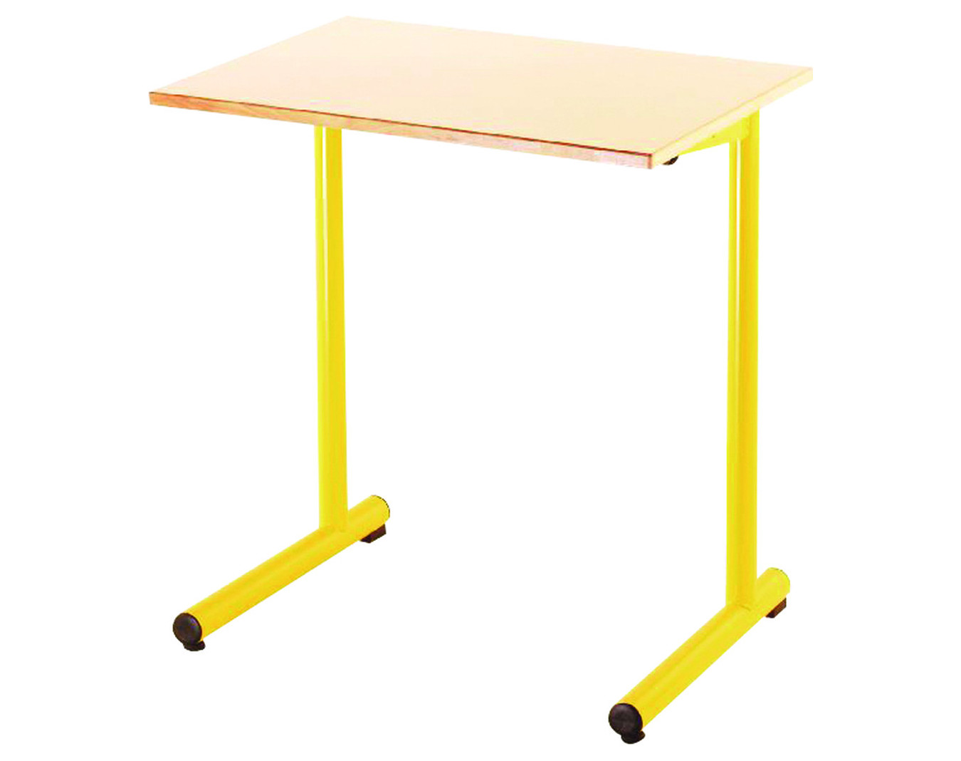 Table d'école 1 place. Piètement en tube Ø 40 mm, colonne en tube carrée 40 x 40 cm soudée sur une semelle en tube rond de Ø 45 mm, finition peinture époxy (voir nuancier).