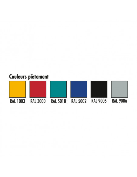 Piètement en acier rond Ø 25 mm, finition peinture époxy, listel et traverse en tôle emboutie épaisseur 1,20 mm et 1,50 mm à l'arrière permettant à l’assise de s’encastrer.