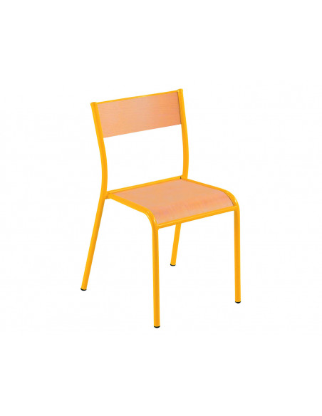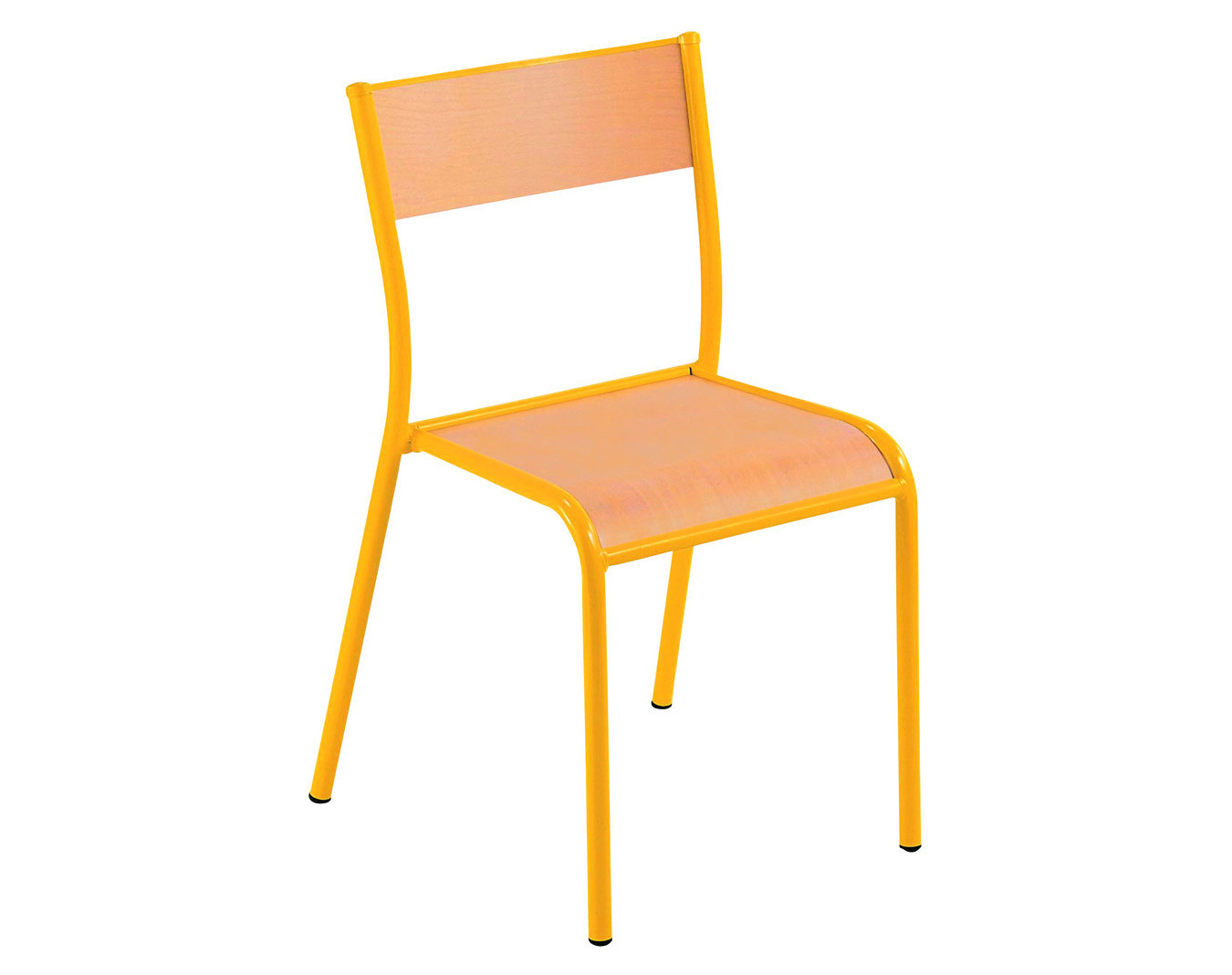 Chaise d'écolier fabriquée par une entreprise certifiée ISO 9001 et ISO 14001.