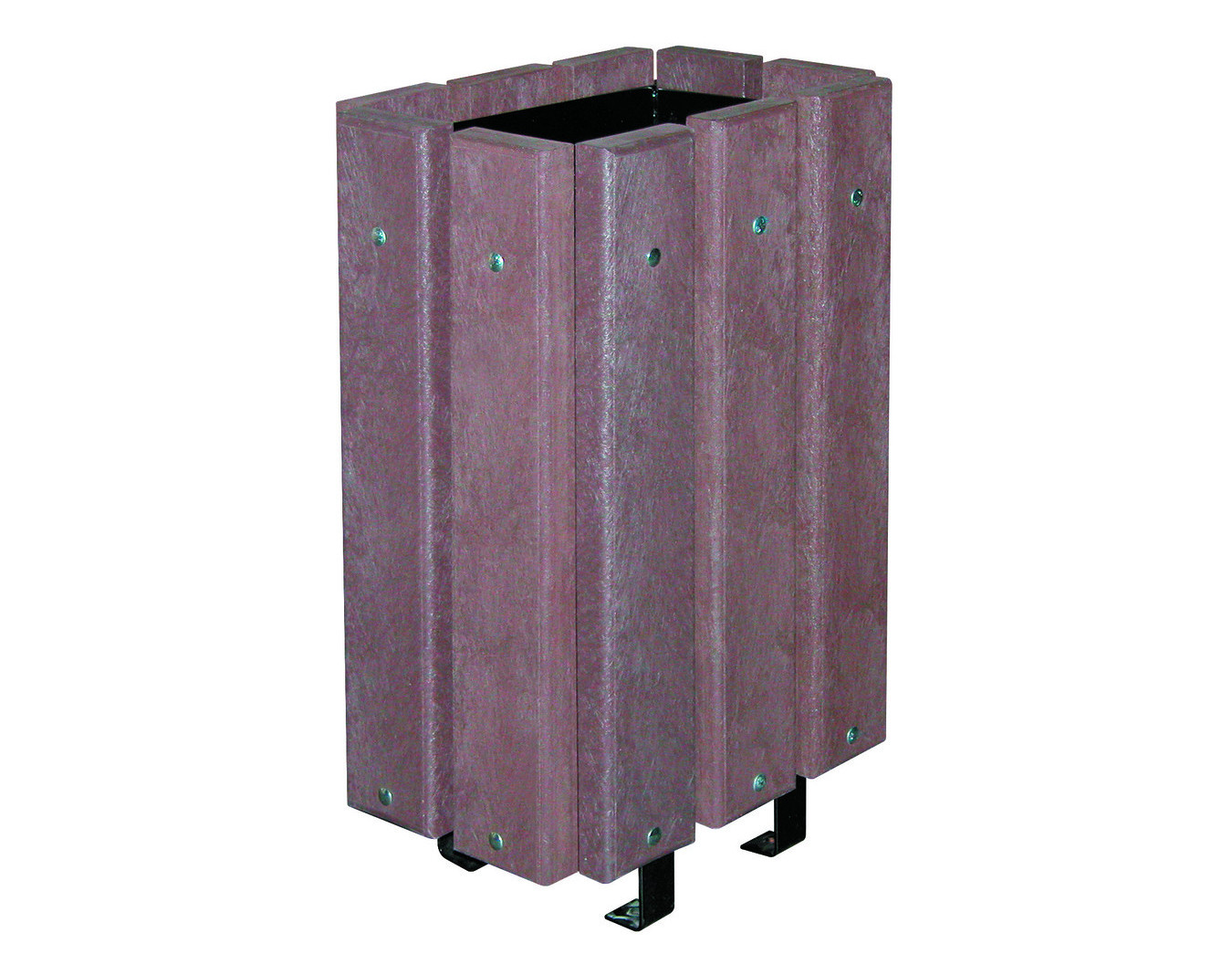 Corbeille pour équiper les extérieurs. Lames en plastique recyclé, épaisseur 35 mm, coloris marron.
