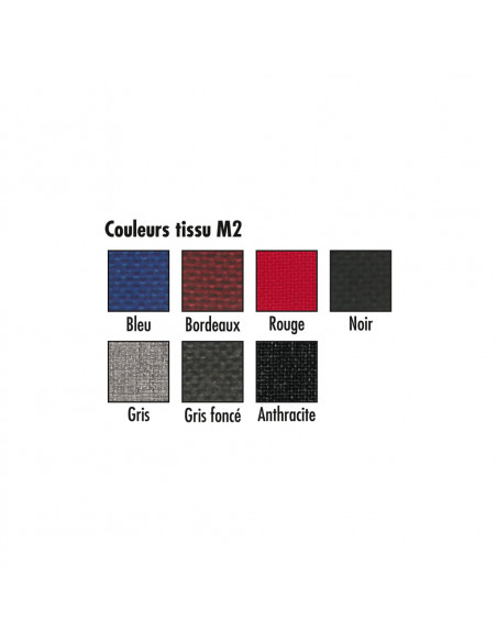Assise et dossier en coque polypropylène, garnis de mousse en polyuréthane expansée, finition tissu classée M2.
