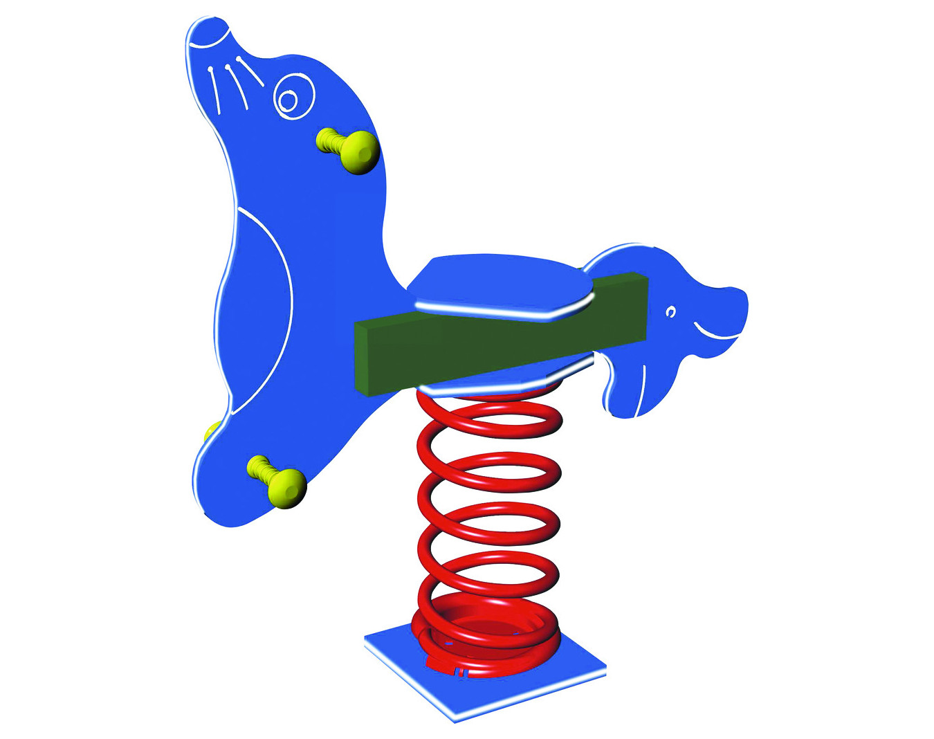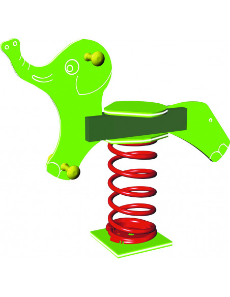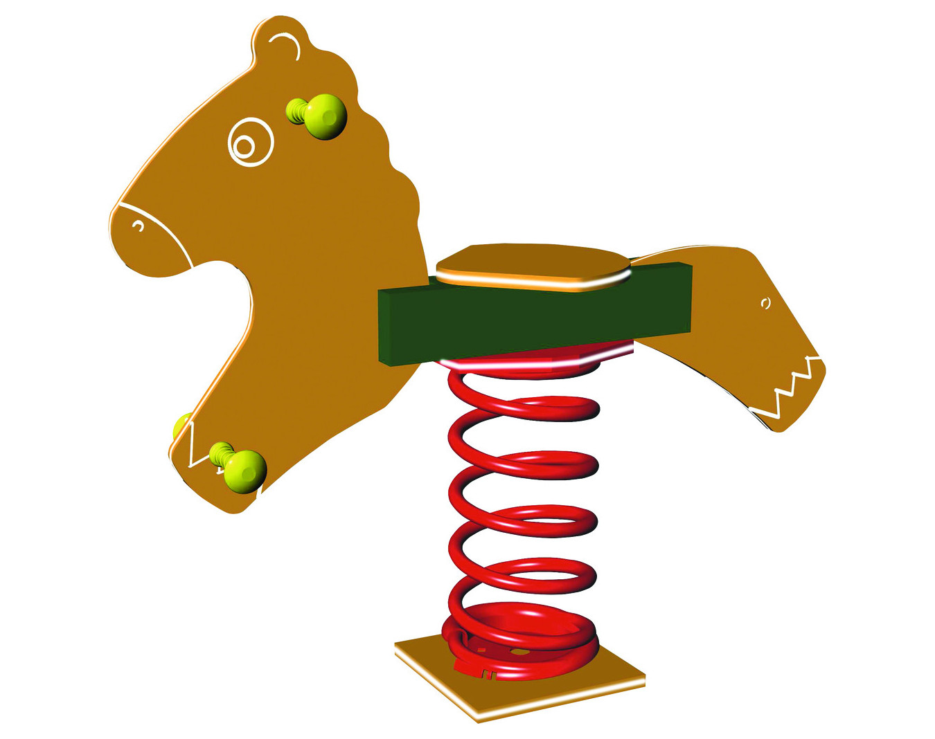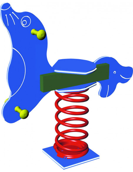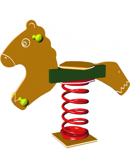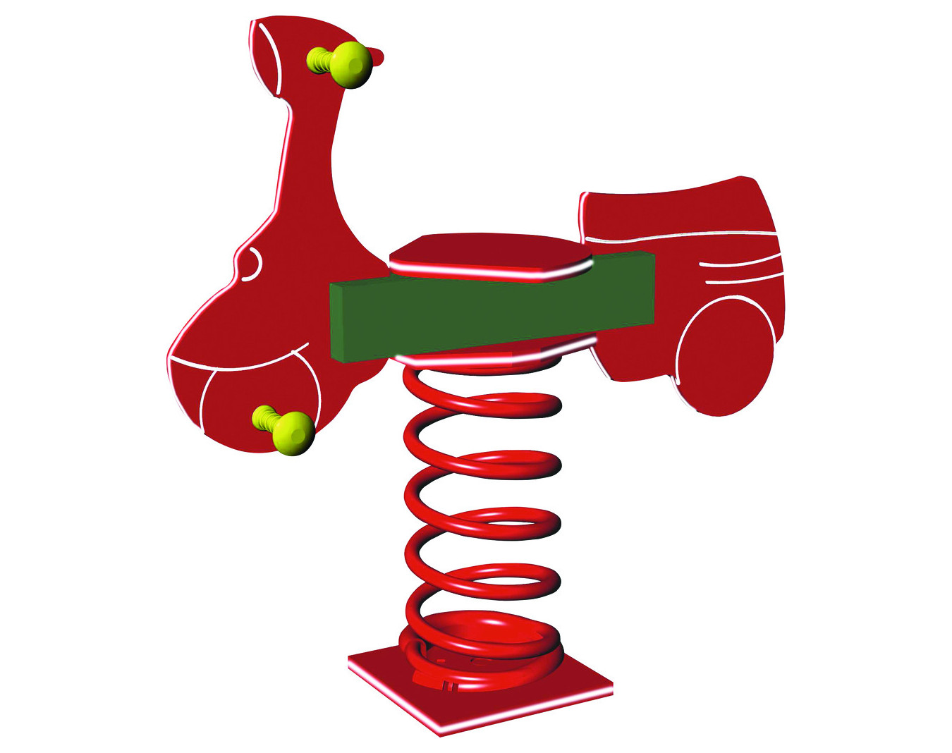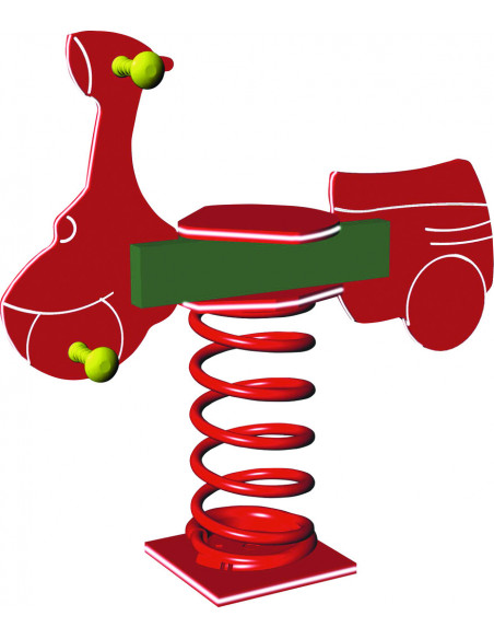 Jeux ressort pour aire de jeux. Âge : de 2 à 8 ans. Ressort hélicoïdal Ø 17 mm, hauteur 40 cm finition époxy RAL 3000. Figurines avant et arrière en HPDE épaisseur 19 mm gravées et assemblées sur...