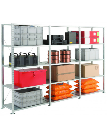 Ce rayonnage est parfaitement adapté aux installations pour le stockage en entrepôt avec une possibilité d'adaptation pour le stockage d'archives. Montants en acier, profil en 43 x 39 mm,...