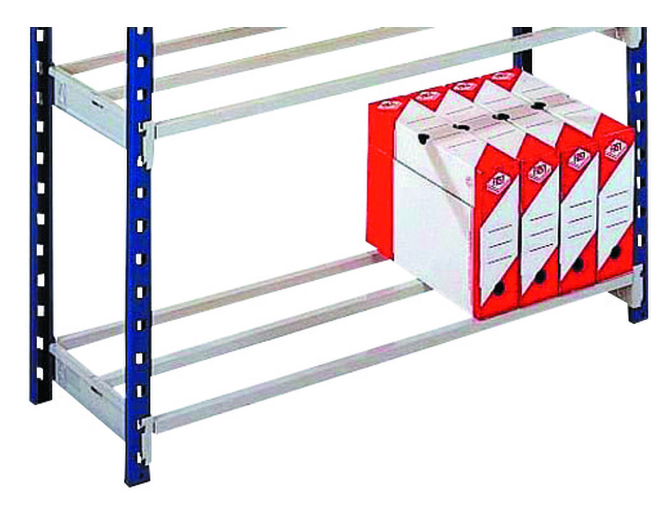 Tablettes claires voies en acier 10/10e finition peinture époxy gris, réglable au pas de 5 cm.