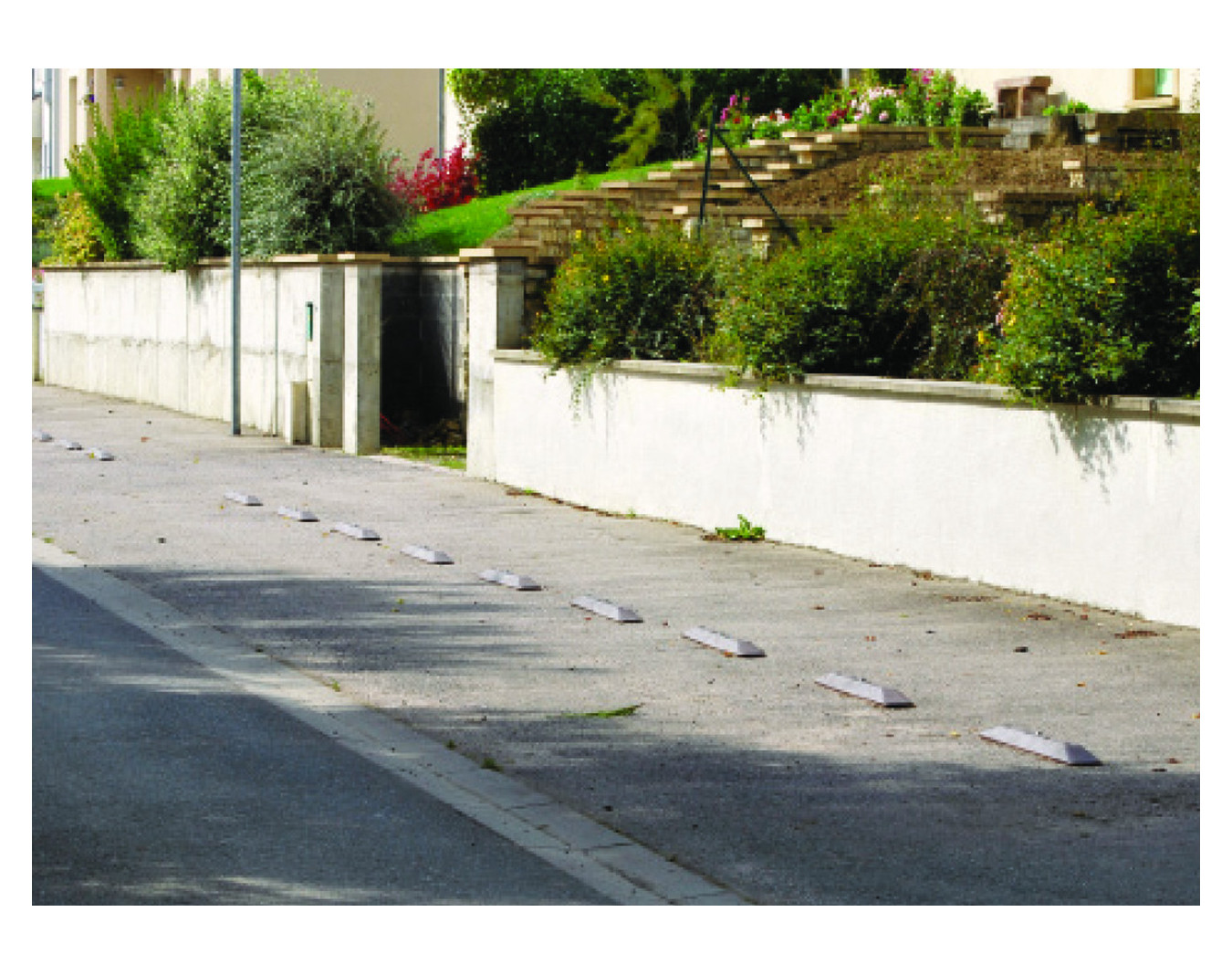 Séparateur pour pistes cyclables. Plastique recyclé teinté dans la masse. Sans entretien. Matière imputrescible. Dimensions : long. 100 x larg. 13 x haut. 5,4 cm. Options : fixations et plot de...