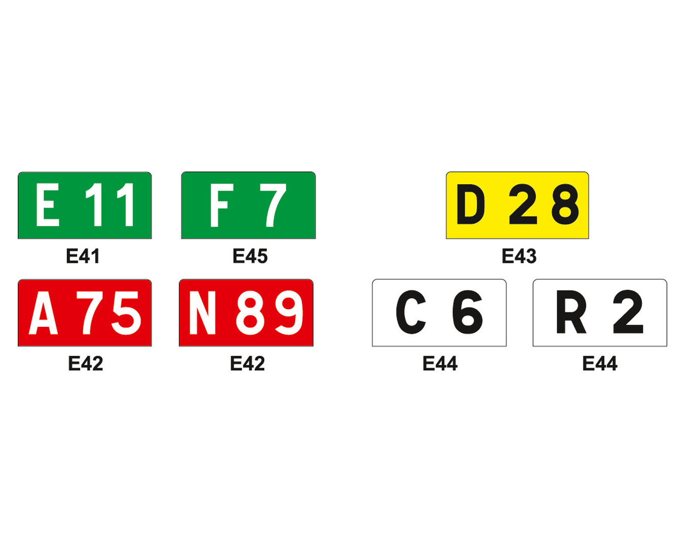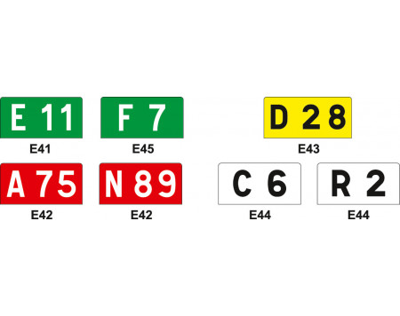 Le cartouche de signalisation permet d'indiquer le réseau routier : européen, autoroutier, national, départemental, communal, rural et le numéro de la voie.