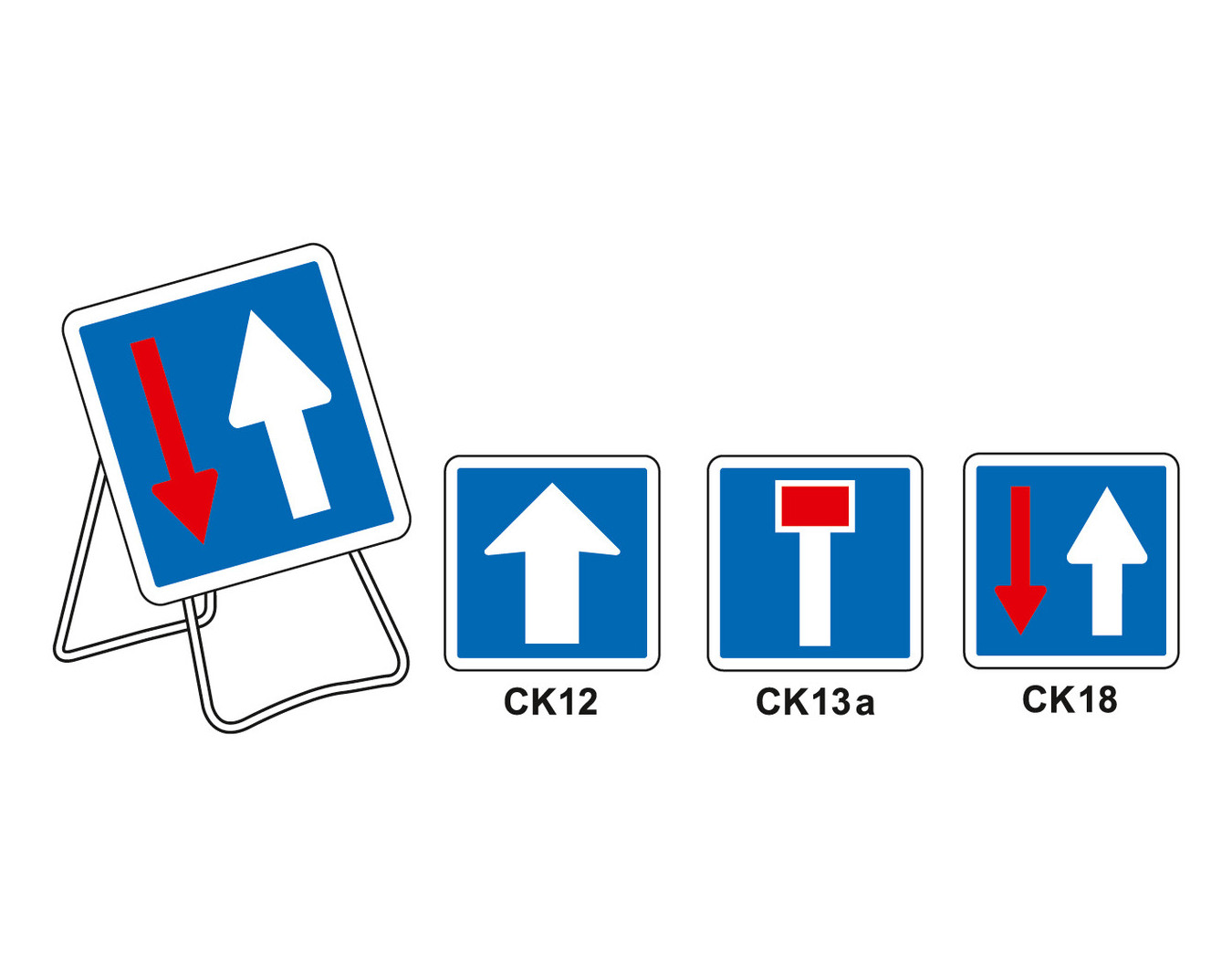Les panneaux temporaires CK signalent une indication. Ils regroupent les panneaux indiquant : une circulation à sens unique, un chemin sans issue ou une circulation alternée.