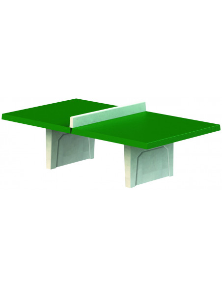 Table ping-pong béton armé piétement coloris gris sablé ou ocre sablé. Plateau finition couleur verte RAL 6009. Épaisseur plateau : 8 cm. Dimensions : long. 274 x larg. 152,5 x haut. 91,2 cm. Poids...
