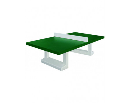 Tennis de table. Structure réalisée en béton armé finition coloris blanc. Revêtement du plateau en béton lisse peint en vert (RAL 6009), ép. 80 mm. Dimensions : long. 274 x larg. 152,5 x haut. 76...