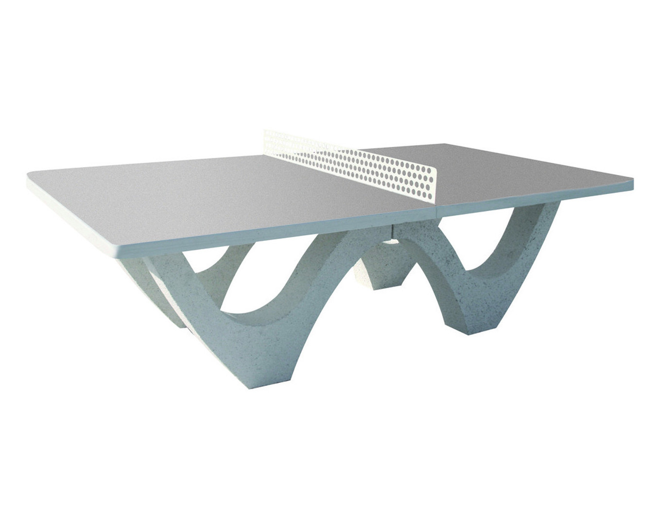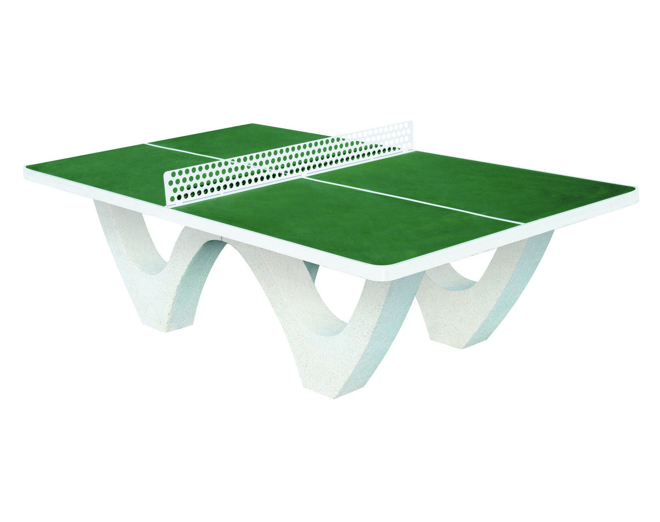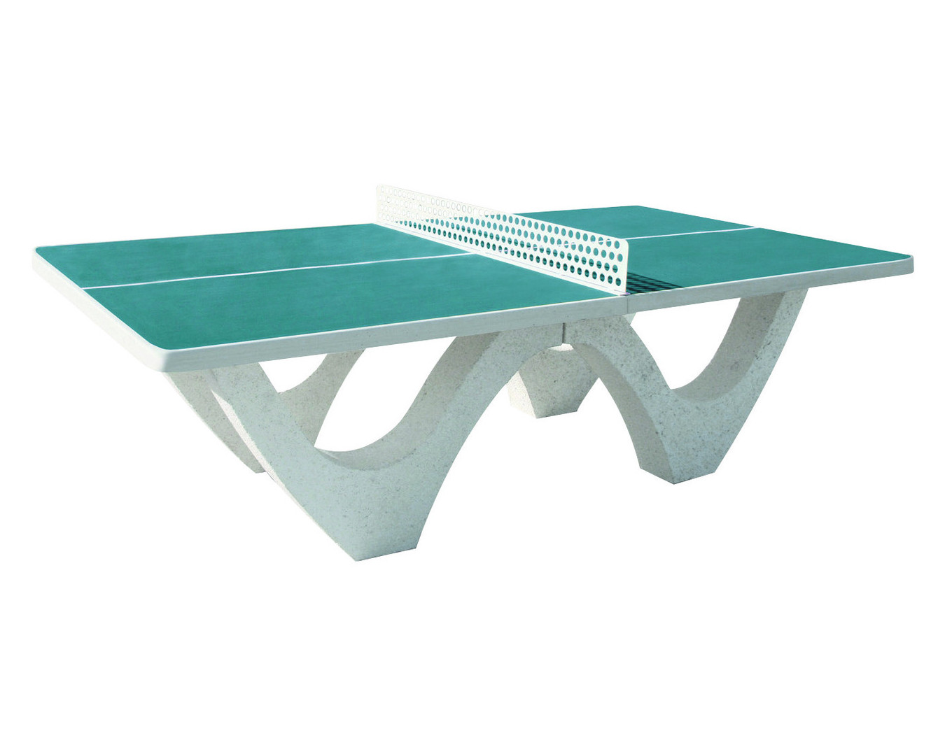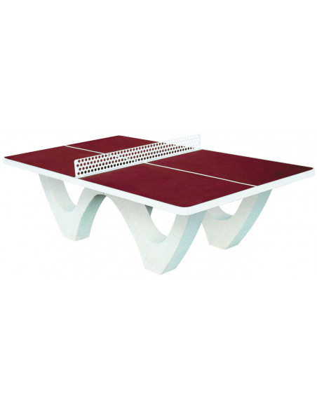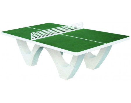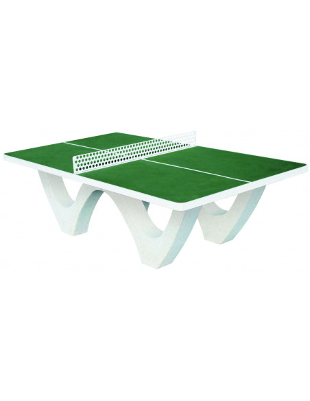Table de ping pong conforme à la norme NF 15312. Structure réalisée en pierre naturelle reconstituée, finition lisse avec armature métallique pour les pieds et armature en fibre polypropylène pour...