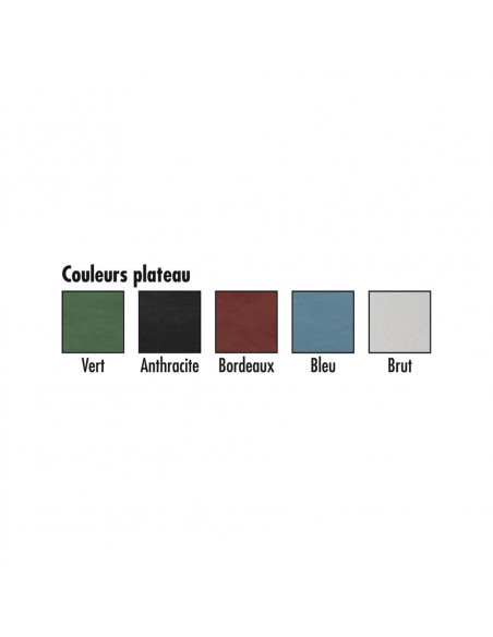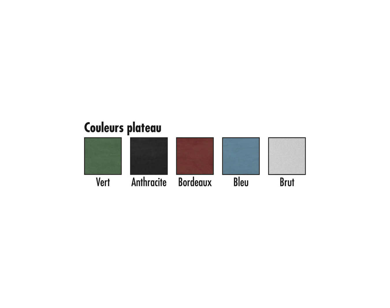 Revêtement du plateau en peinture extérieure satinée à base de résine vinyle acrylique (nettoyage à l'eau), voir nuancier.