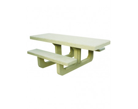 Table pique-nique robuste en béton finition ocre sablé ou gris sablé.