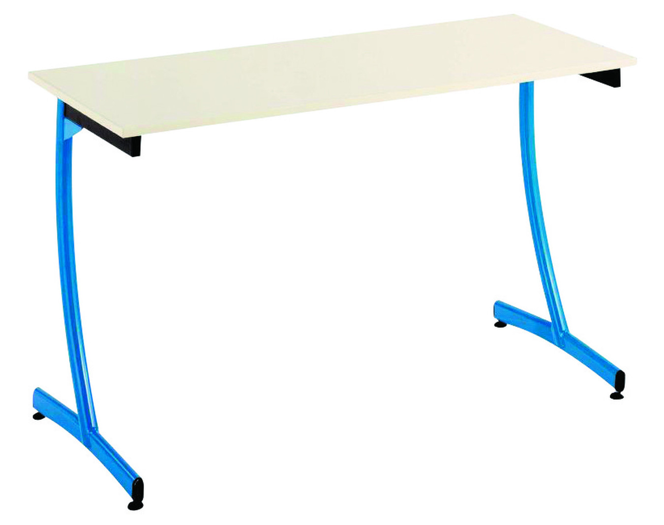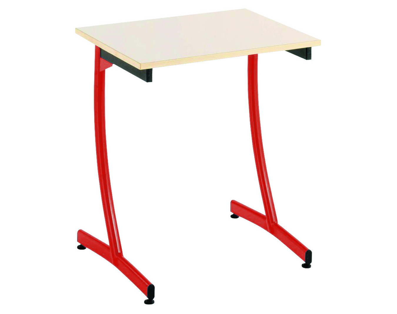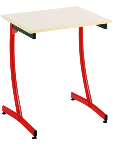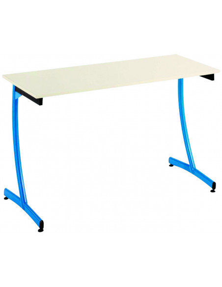 Table scolaire en mélaminé. Piètements en tube Ø 40 mm soudés sur semelles cintrées en tube méplats 50 x 25 mm finition peinture époxy (voir nuancier). Embouts à vérins en polypropylène noir non...