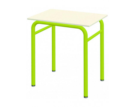 Table enfant scolaire avec piètement en tube rond composé de 2 arceaux Ø 32 x 1,5 mm reliés par des traverses Ø 30 x 1,5 mm (voir nuancier).