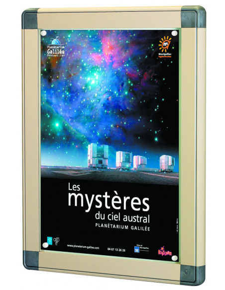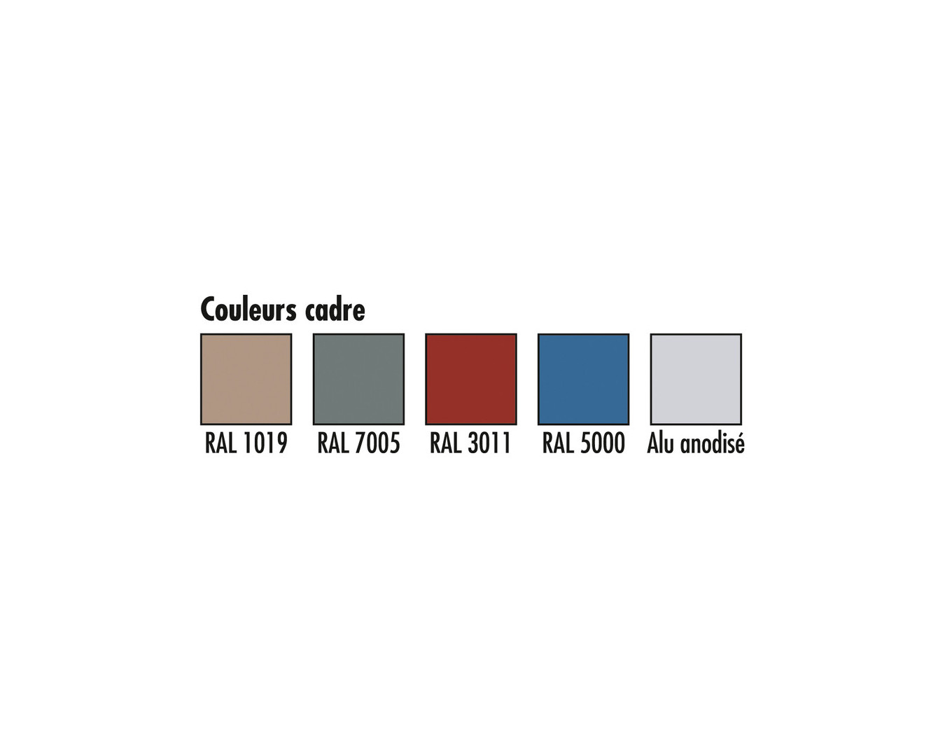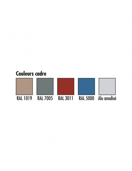 Encadrement en aluminium anodisé naturel ou alu laqué polyester (voir nuancier) avec coins arrondis coloris gris RAL 9023.