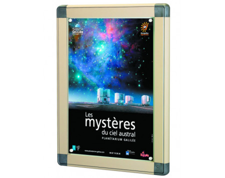 Vitrine extérieure. Encadrement en aluminium anodisé naturel ou alu laqué polyester (voir nuancier) avec coins arrondis coloris gris RAL 9023. Vitre en verre trempé. Fond tôle gris RAL 9002 pour...