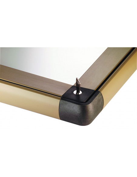 Encadrement en aluminium anodisé naturel ou alu laqué polyester (voir nuancier) avec coins arrondis coloris gris RAL 9023.
