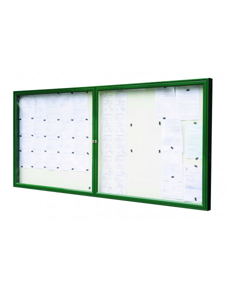 Vitrine 1000 double battant avec encadrement en aluminium peint (voir nuancier) avec angles vifs. Vitre en plexichocs, ép. 4 mm. Fond magnétique en tôle galvanisée. Dimensions disponibles : de 8 à...