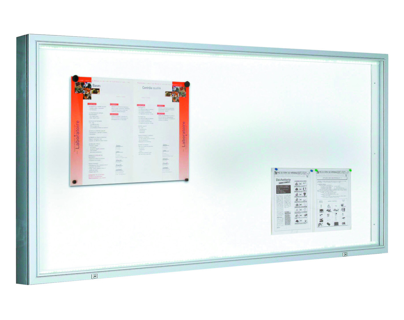 Vitrine extérieur grand format. Encadrement en aluminium anodisé naturel très robuste. Vitre en méthacrylate. Fond magnétique en tôle laqué blanc. Dimensions disponibles : de 18 à 27 A4. Épaisseur...