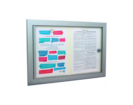 Encadrement en aluminium anodisé argent avec angles vifs.